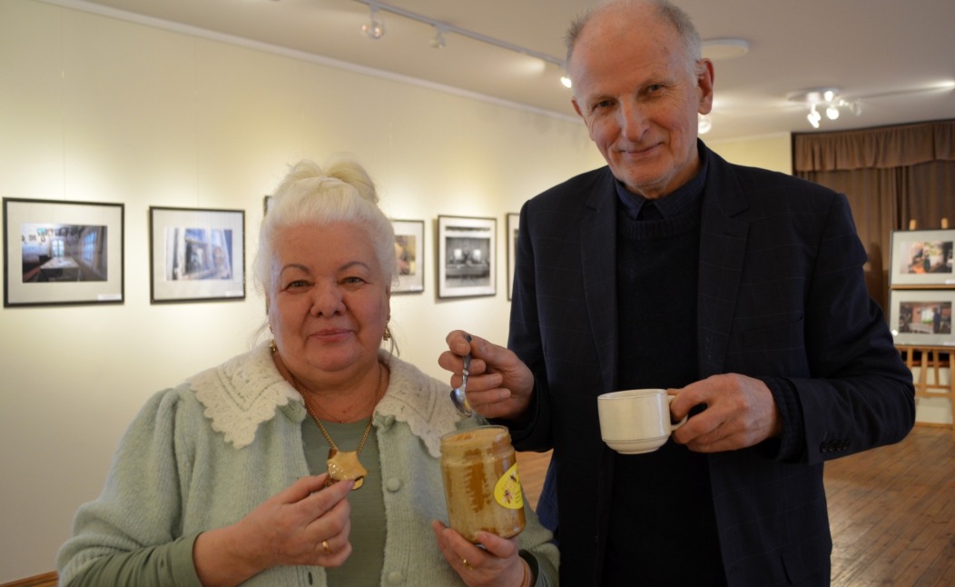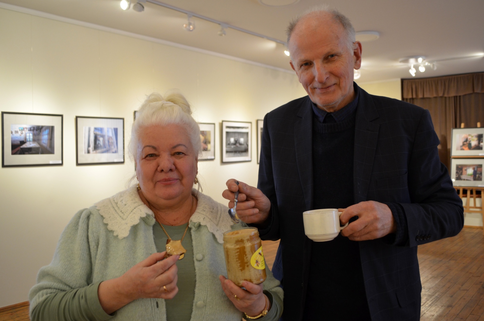 Valentinas Juraitis – ne tik fotografas, bet ir bitininkas: Sužionių seniūnijoje (Vilniaus r.) jis puoselėja bityną, o parodos pristatymo metu susirinkusiuosius vaišino savo medumi.